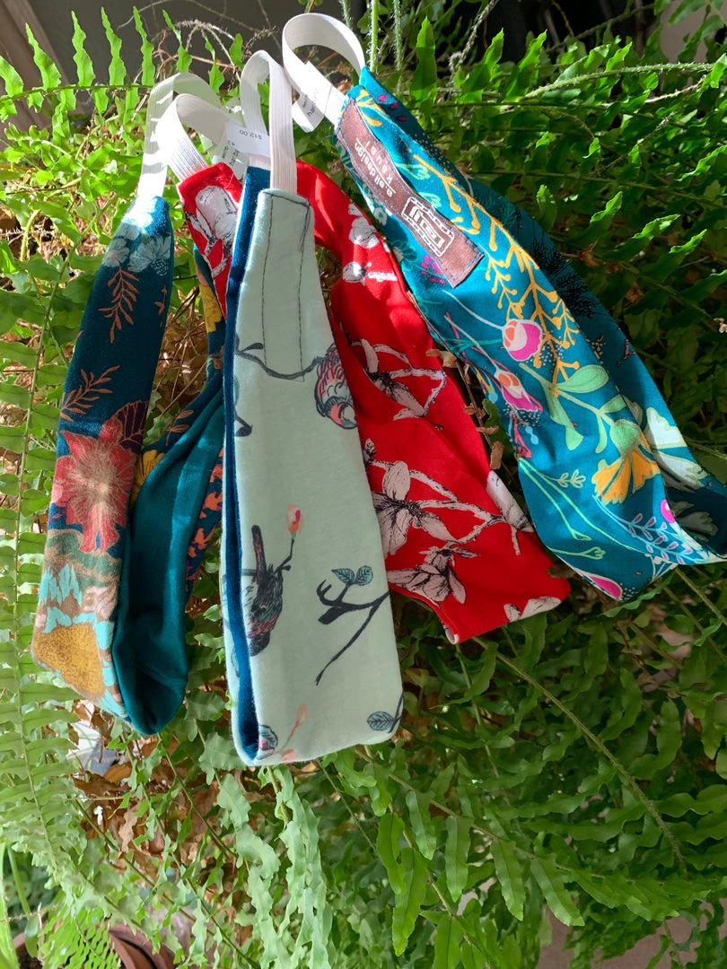 We make these colorful headbands from the fabrics left over from our clothing production. We strive towards a zero waste policy and this a darn cute way to get there. Colors and prints vary, but always available in the fabrics from our most current collections. Can I say matchy, matchy!