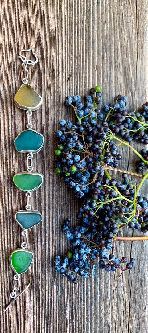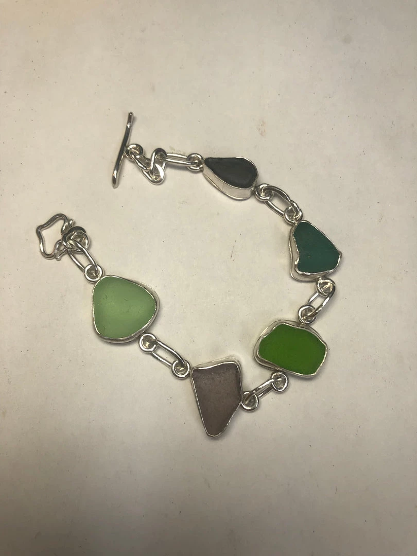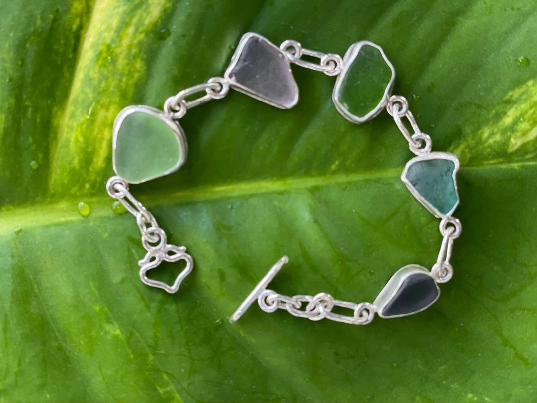 An elegant and unique sea glass bracelet. This one is my personal favorite! It is comfortable and I wear it with everything.