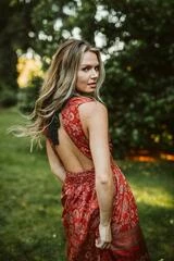 Boho, A- Line, Ruffle bottom, V-Neck Maxi dress featuring a triangle hole tie at the back. The Fern dress speaks timeless elegance and class.