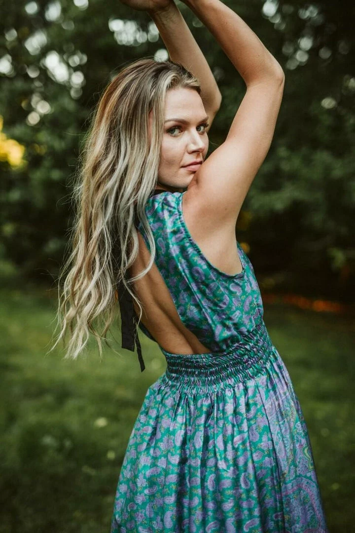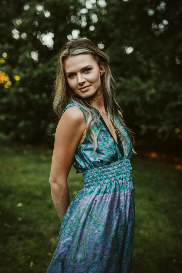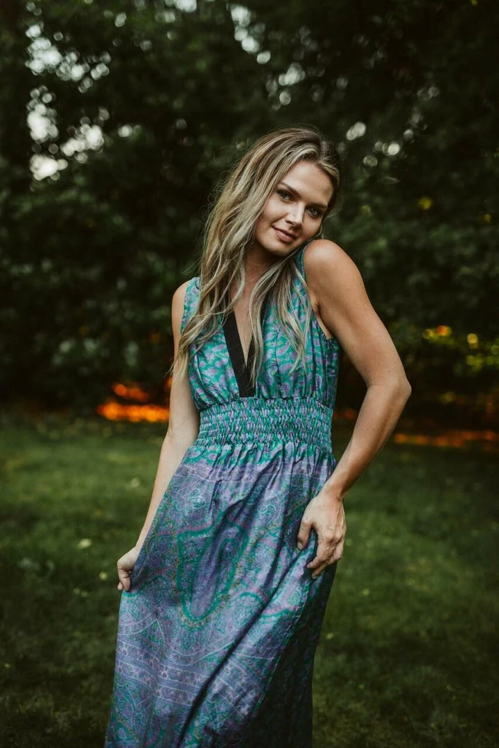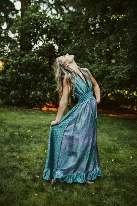 Each unique piece designed from upcycled 100% silk sarees, ethically sourced from India. They hand-dye every item, making each style one-of-a-kind. Once it finds a new home, it’s gone!