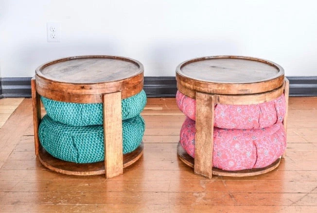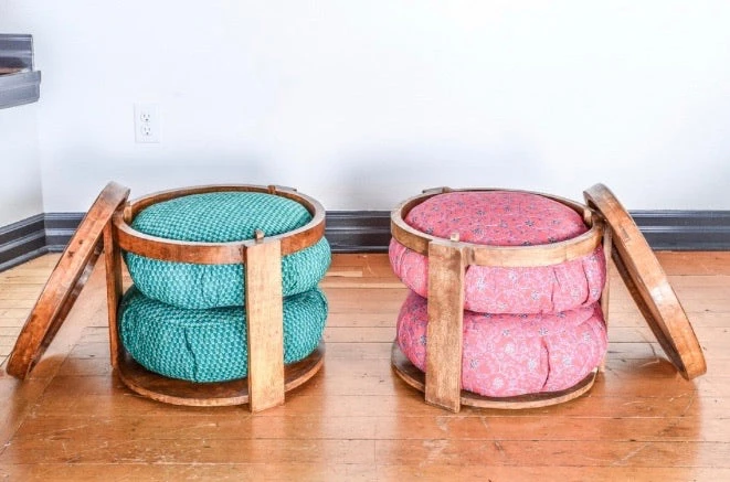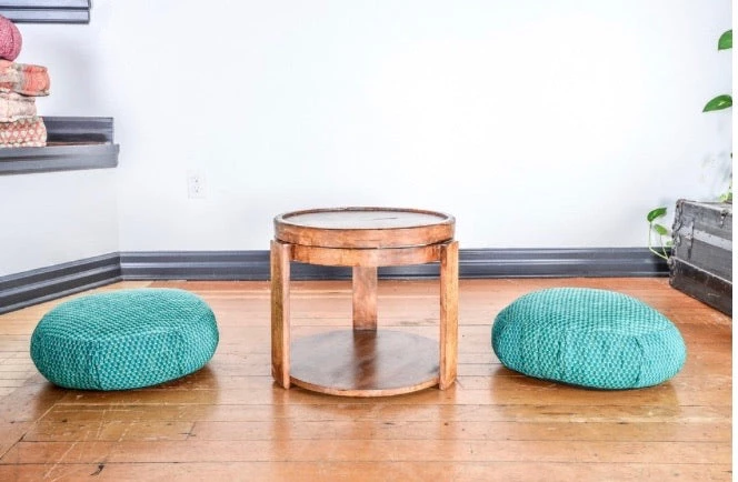 An all-inclusive table for relaxing with tea, storage for our meditation pillows, or anything else your heart desires! Throw a meditation pillow on top to use as a comfy foot stool.