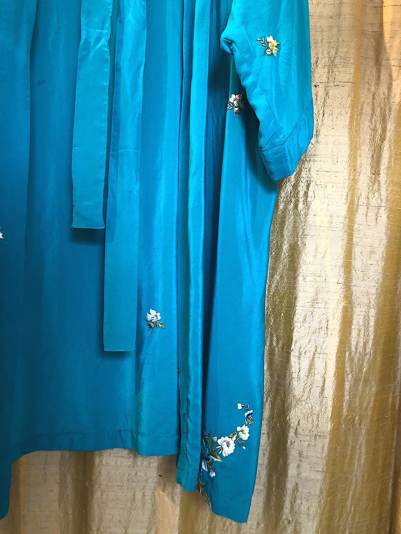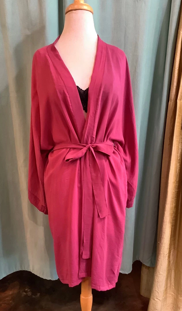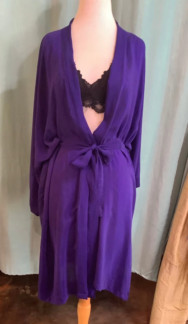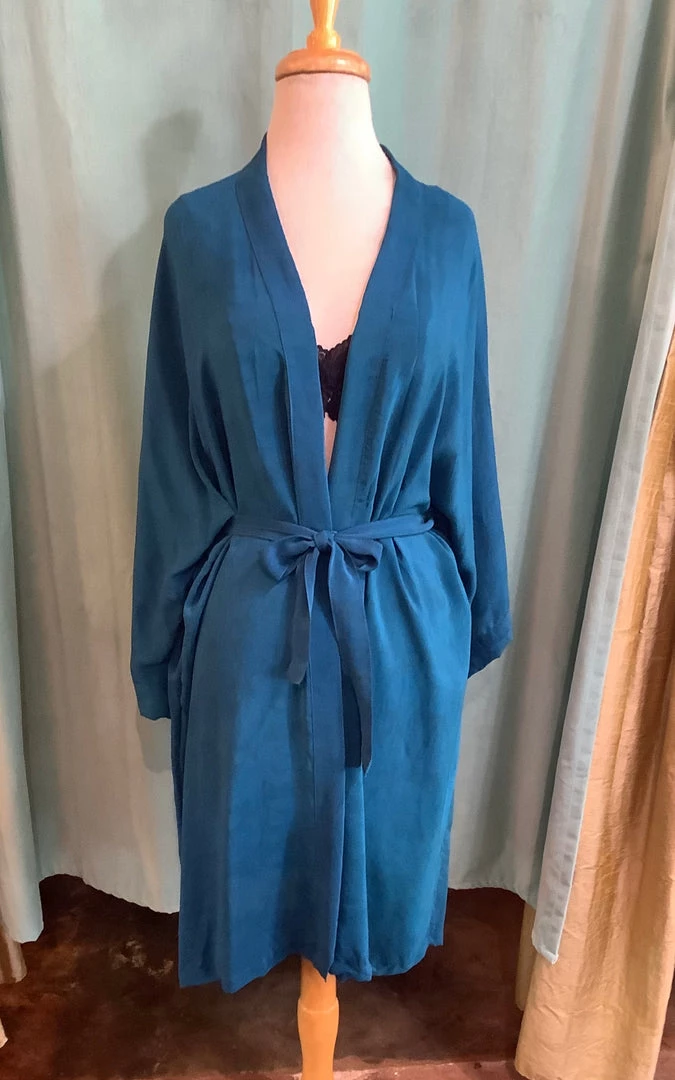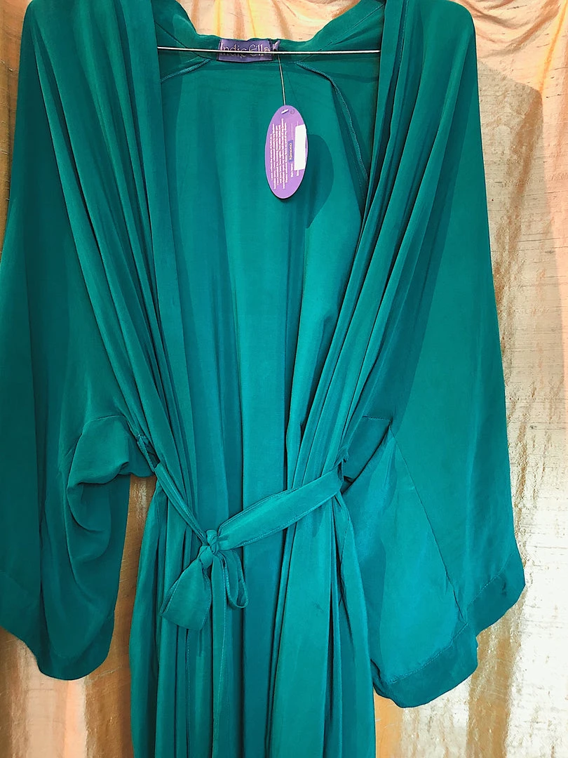 Knee-length silk with three-quarter cuffed mandarin sleeves, Kimono is the visage of the Japanese ceremonial garment for which it’s named. These robes are great for around the house or at the beach.