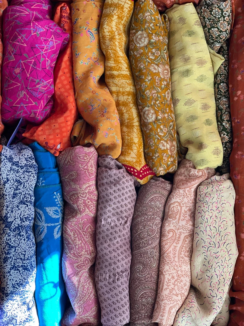 Upcycled silk sari’s make gorgeous sarongs, scarves, decor, chair throws, beach blanket for a picnic, the possibilities are endless!