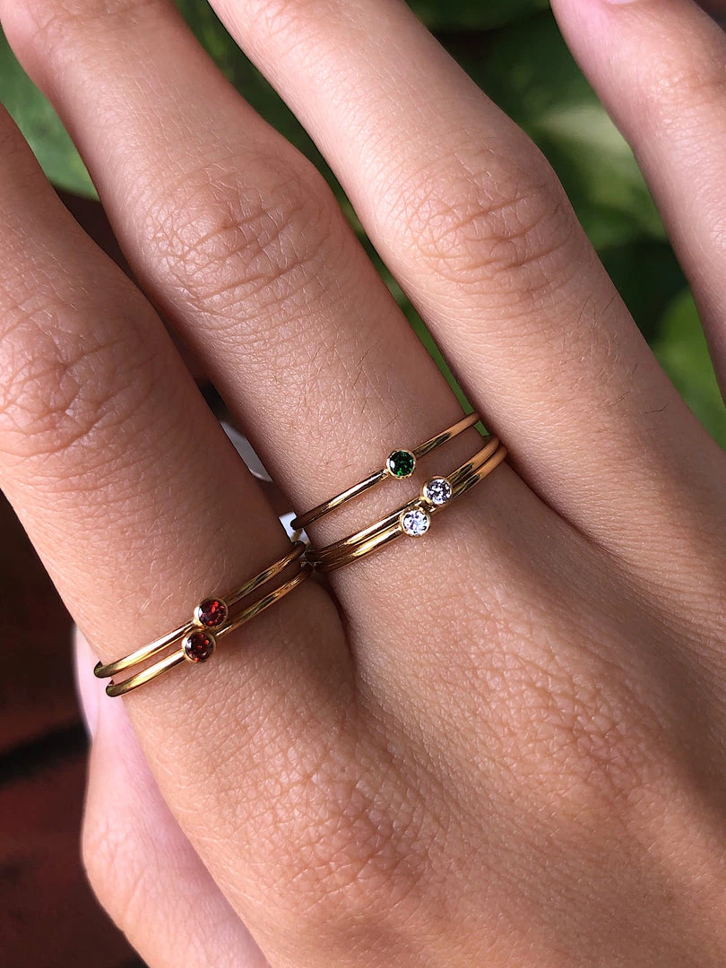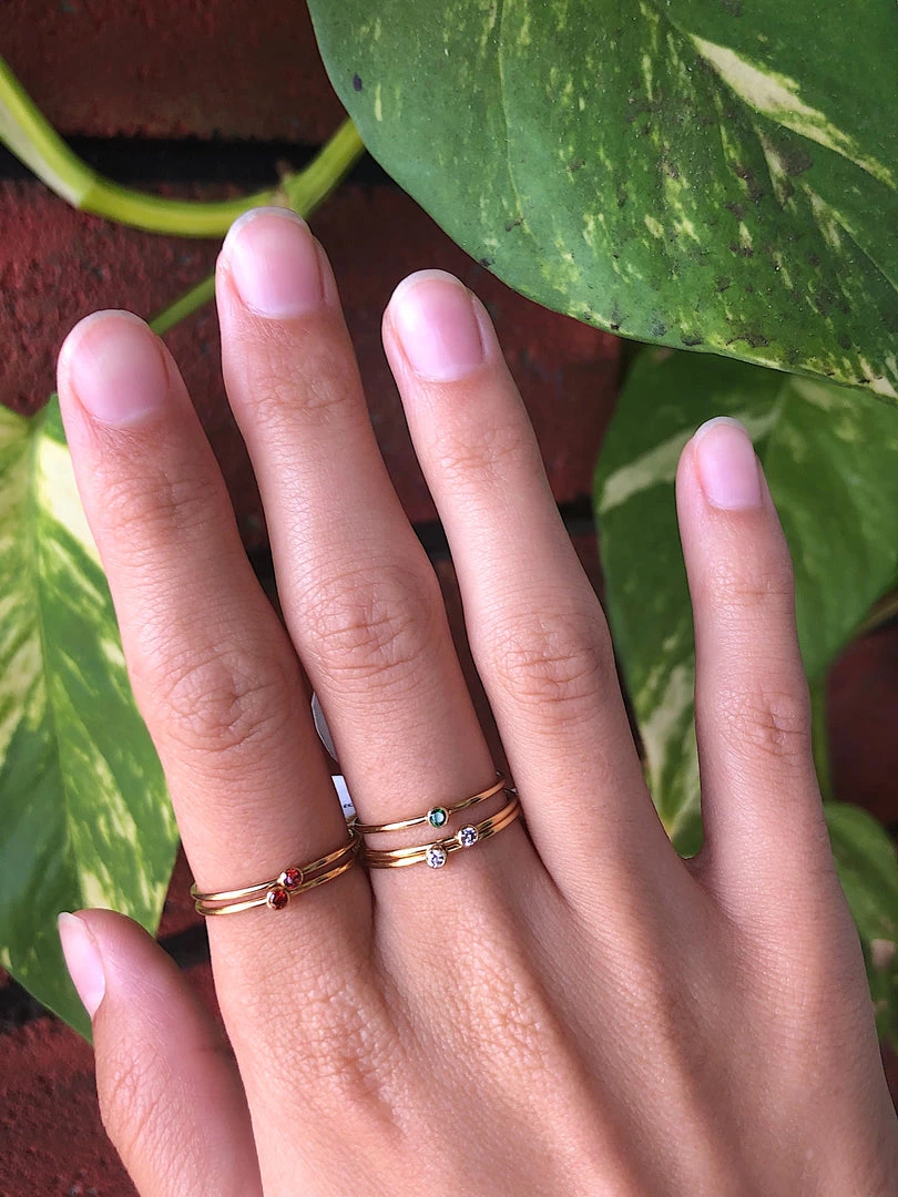14k gold fill rings with teeny tiny stones. Perfectly dainty and subtle. Stack with others or wear alone. Made locally on Kauai.