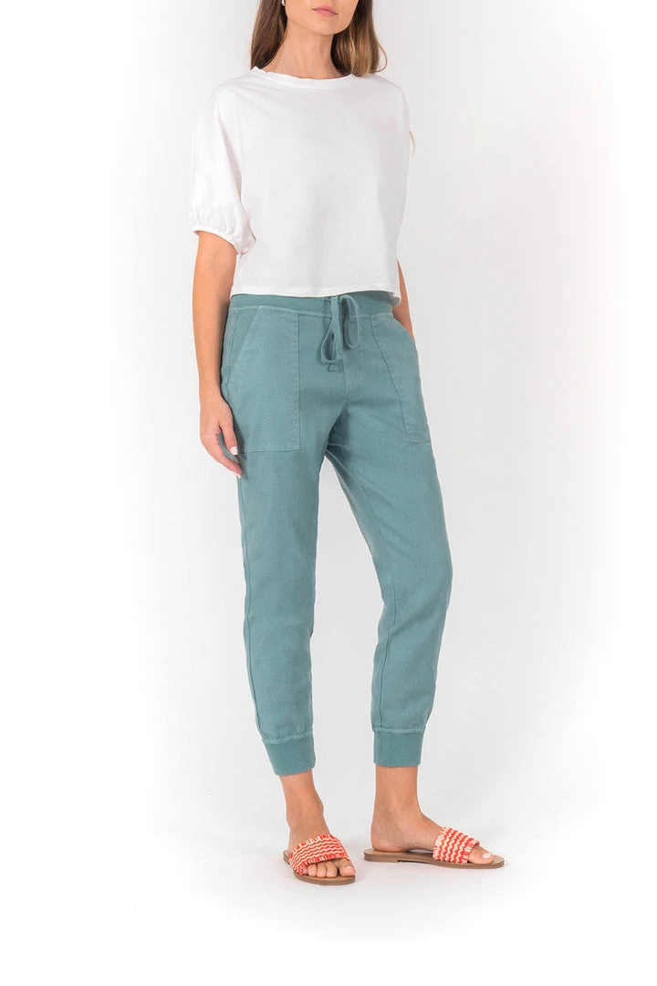 Work from home inspired life makes this Jogger a must-have. Designed with all day comfort in mind with a drapery soft feel, these joggers are made from a soft lightweight stretch linen Tencel™. The waistband draw cord lets you customize the fit as you like. These pull-on joggers have a loose, relaxed fit with a tapered leg finished with rib cuffs. The perfect summer pants and a WFH staple that is both cozy and comfortable. Suggest wearing a size down for a more fitted look.