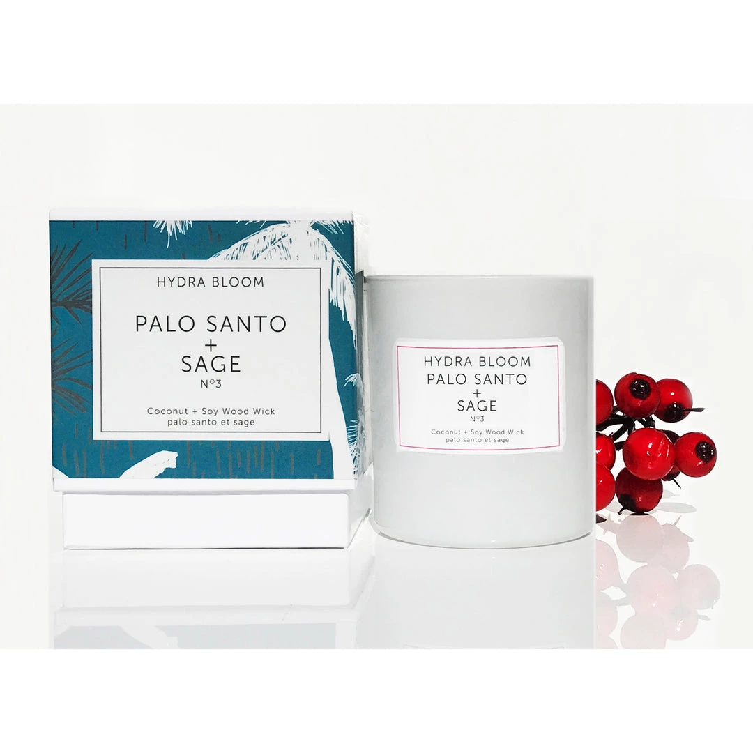 Hydra Blooms Wood Wick Candle made with Coconut + Soy wax mix.