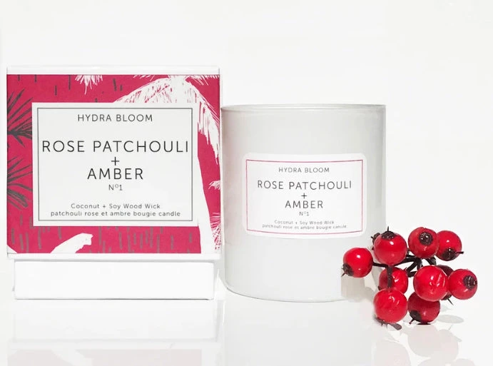 ROSE PATCHOULI & AMBER Smells like a bohemian holiday heaven with the most beautiful notes. TOP – Sparkling Lemon, Aromatic Lavender, Orange Peels MIDDLE – Shaved Cinnamon, Heady Rose, White Jasmine BASE – Red Patchouli, Warm Amber, Musk, Sandalwood