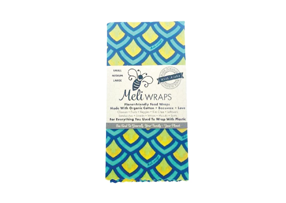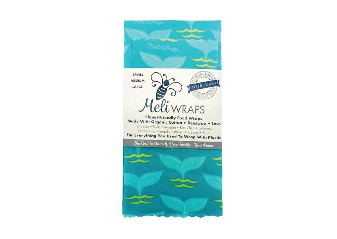 Meli Wraps are handmade in Kauai, HI and Bend, OR, from organic cotton and a special beeswax blend to create a natural wrap that helps preserve your food. The wraps stick to themselves and can be washed and re-used for up to a year! Cover your bowls, plates or food themselves! Make snack packs, wraps sandwiches, over cover half avocados!
