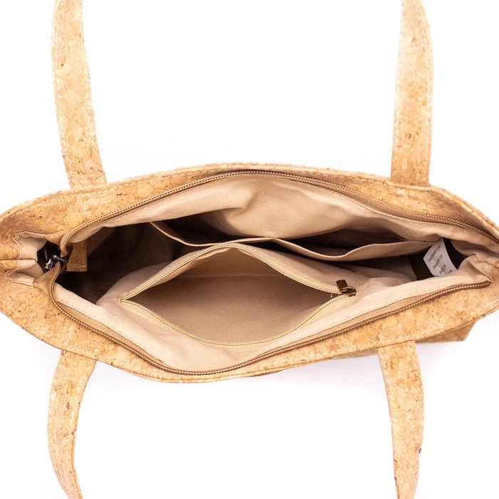 Natural Cork Bag- lots of inside room with 2 small poceket and a zipper pocket to keep your things organized!