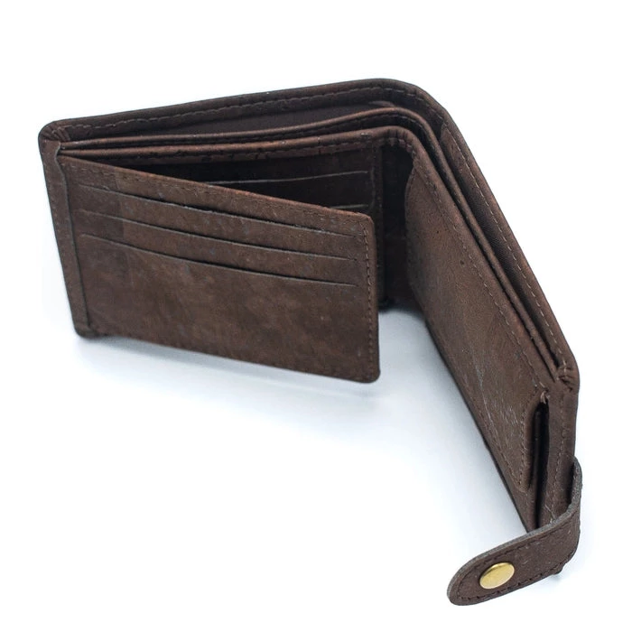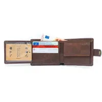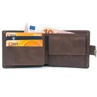 This wallet can hold 6 bank cards, +1 ID/photo slot, 2 cash pockets, and one snap buttoned coin pocket.
