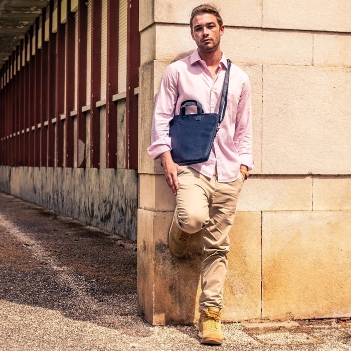 A fully-padded laptop bag fits laptops up to 15 inches. Interior pocket for iPad or smaller tablet.