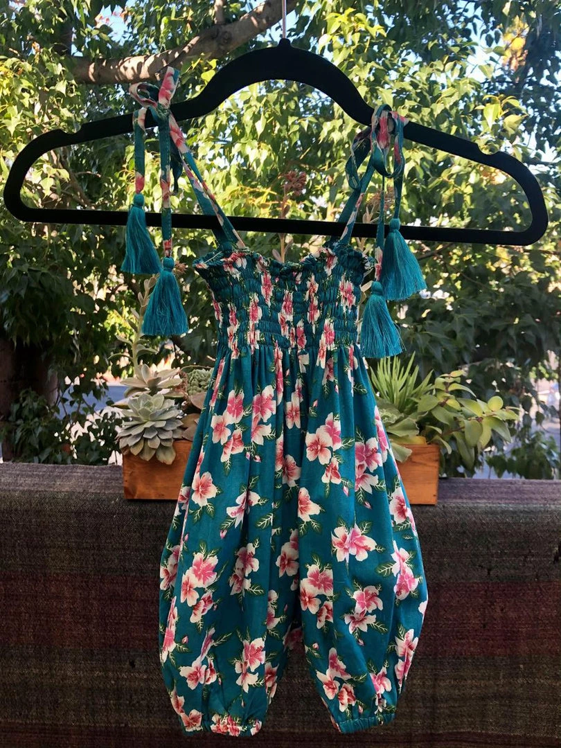 Looking for the perfect gift for the little ones in your life? This Baby Jumpsuit comes in the most beautiful colorway and adds flare to your average baby outfits. Featuring adorable tassel ties and balloon fit legs, this jumpsuit looks just as cute as it is cozy. Â