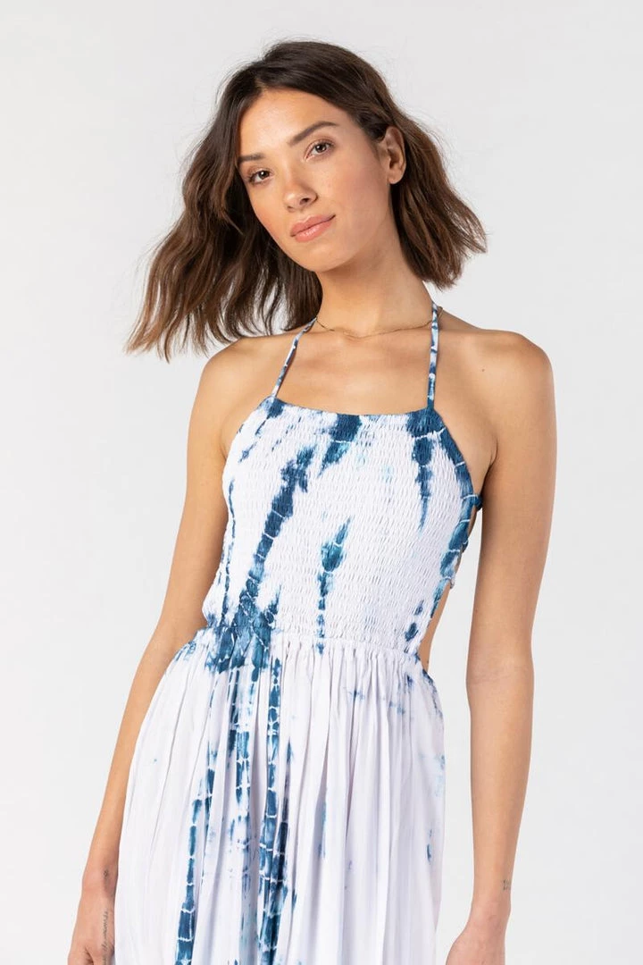 - Features: Smocked bodice, Caged back, self-tie halter straps for customizable fit, Lined skirt